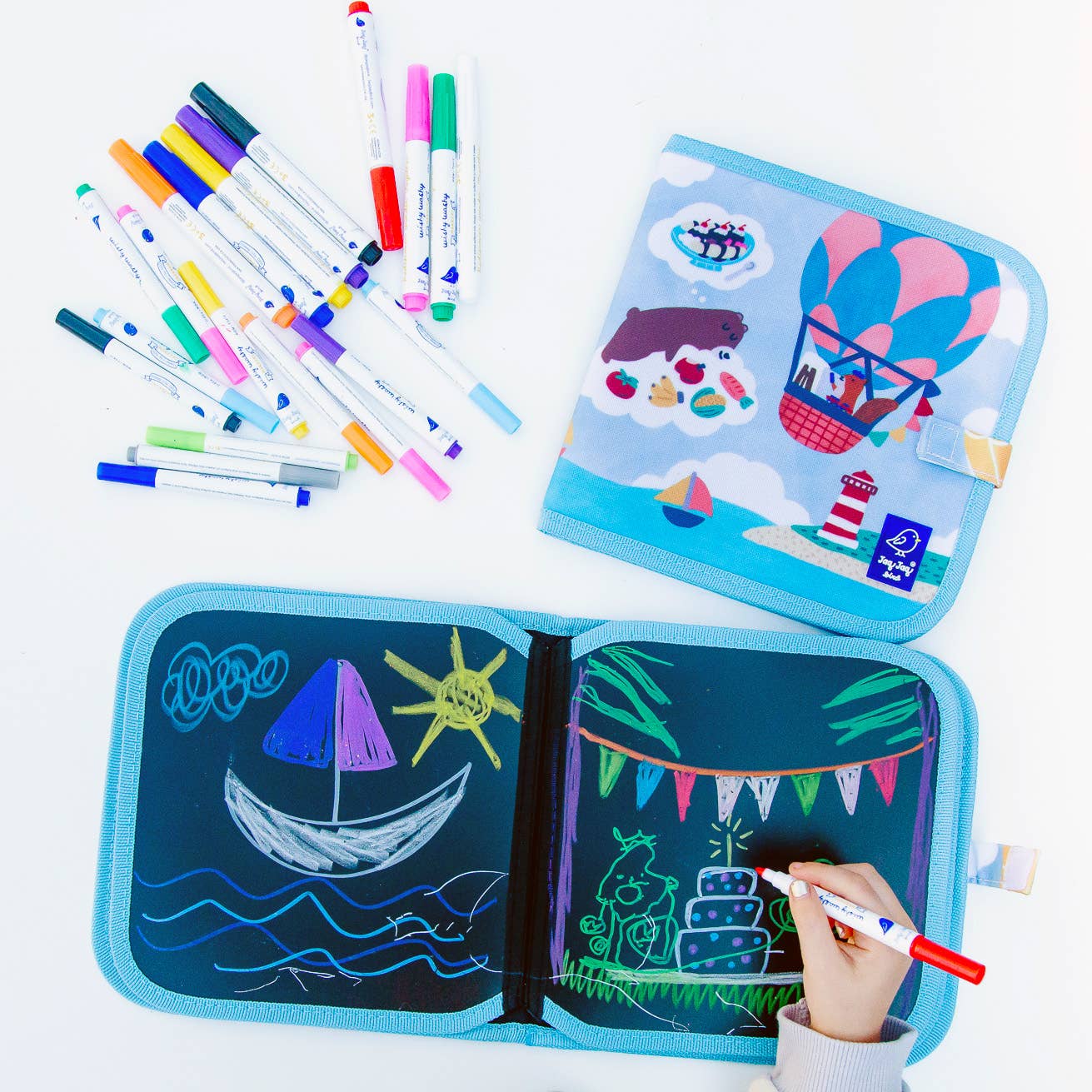 Wishy Washy Markers & Mini Wishy Washy Markers (both sold separately) are also compatible with this product.