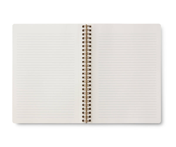 Hit the books with our softcover spiral notebooks, featuring full-color covers with gold foil accents, printed on a heavy-weight textured paper. The notebook has 150 ruled pages, a sturdy double-spiral binding, and pockets for extra storage.