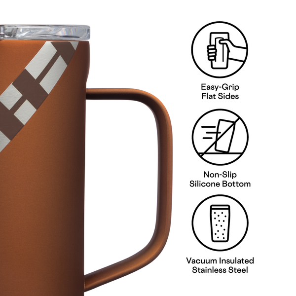Star Wars™ fans can now pay homage to their favorite characters with Corkcicle's high performance drinkware collection- including the fan-favorite 16oz coffee mug. Will you show your support for the Rebel Alliance or join the Galactic Empire? The choice is yours. Features: Hot for 3+ hours | Triple Insulated | Sliding, shatter-proof lid | Stay-put silicone bottom | Easy-grip, flat sides | Stainless steel Care instructions: Handwash Only