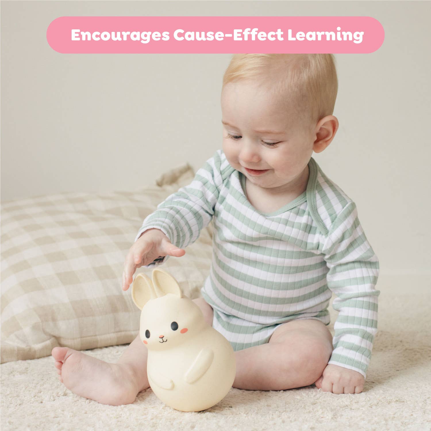 Ideal for babies learning to crawl, Bunnys wobbling action entices little ones to reach out and push.