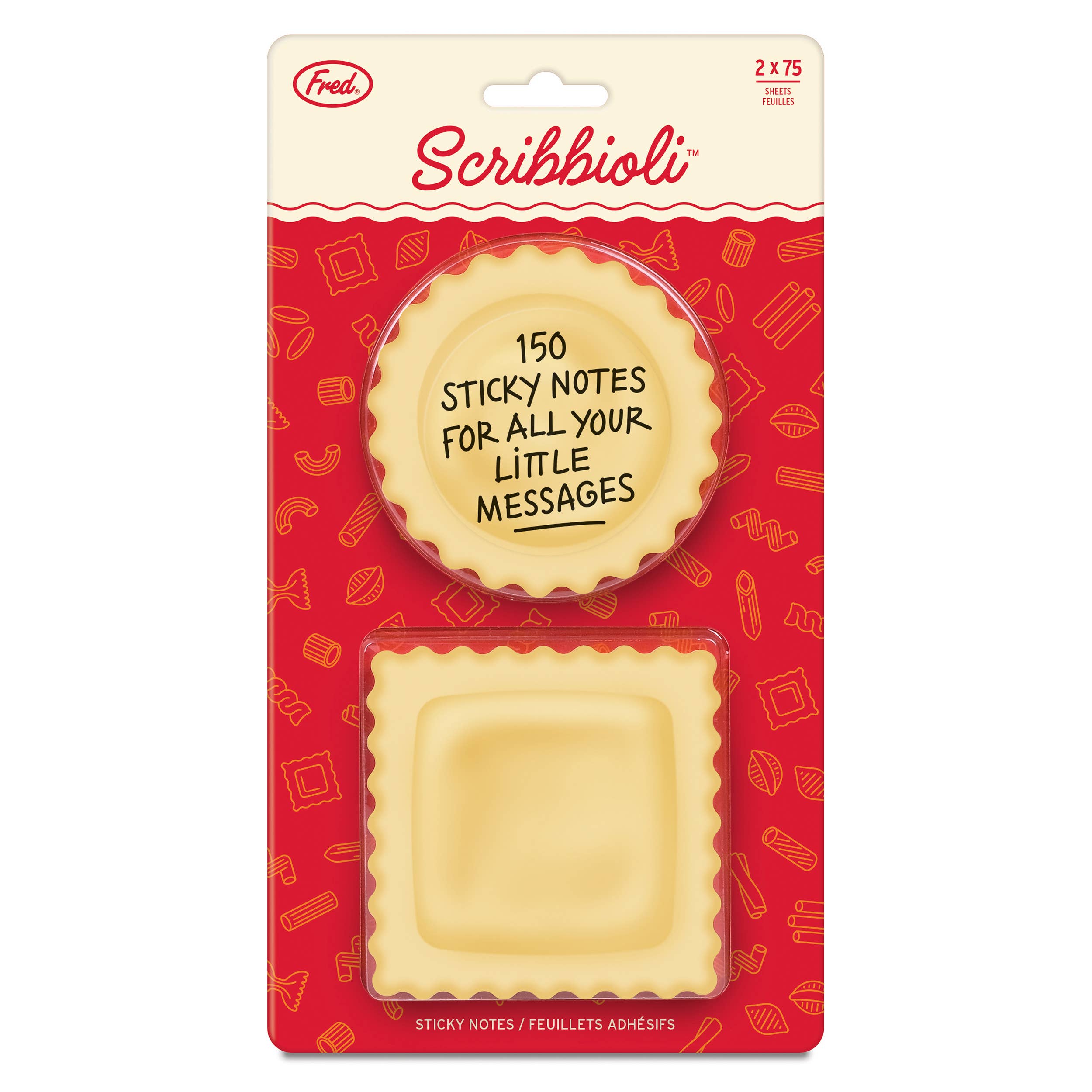 Stick a fork in your to-do list—Fred’s Scribbioli is served! These ravioli-shaped sticky notes are stuffed with charm and perfect for bite-sized reminders or saucy little love notes. Each set includes two pads with 75 sheets each and comes packed in a gift-ready backer card.