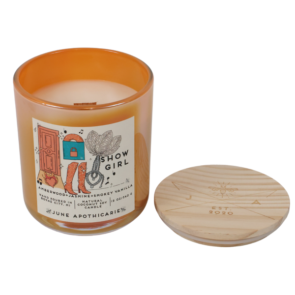 Showgirl 12 oz Glass Wooden Wick Candle