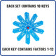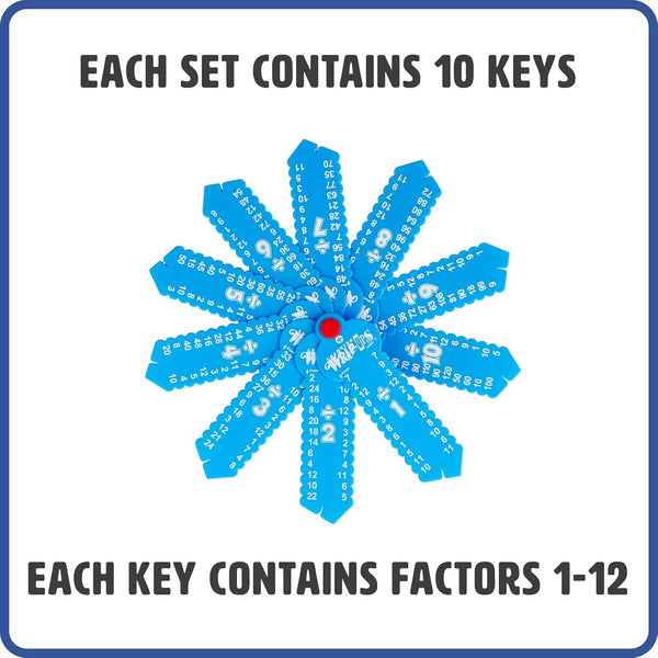 Learning Wrap-ups offer a fun and unique way to help students memorize basic division. Students wrap the string from the problem on the left to the answer on the right, and then turn the Wrap-up over to see if they got it right. Use a stopwatch to measure improvement and to see how fast they can really go. Each set contains 10 self-correcting keys and cover all the facts for that operation.